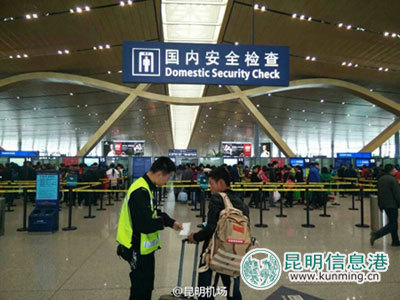 31日中午,長水機(jī)場(chǎng)安檢通道秩序井然。