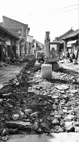 ????在青龍街的入口處,兩名老者告訴記者,青龍街已經(jīng)挖了近3個月時間,聽說還要幾個月才能全部完工,開挖是因為要修建排水系統(tǒng)。