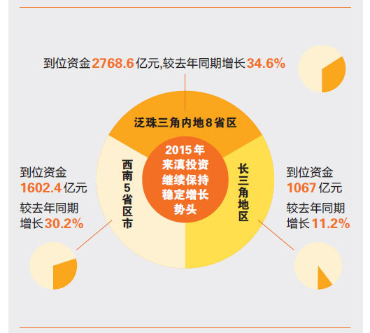 ????泛珠三角內(nèi)地8省區(qū)、西南5省區(qū)市和長(zhǎng)三角地區(qū)來(lái)滇投資繼續(xù)保持穩(wěn)定增長(zhǎng)勢(shì)頭,其到位資金分別為2768.6億元、1602.4億元和1067億元,較去年同期增長(zhǎng)34.6%、30.2%和11.2%。