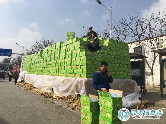 ????距離除夕越來越近了,前往金馬正昌果品市場采購水果的采購大軍將金馬路口至水果市場的道路變成了停車場。