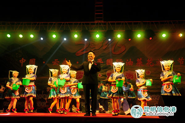 ???昆明信息港訊 記者林堅(jiān) 通訊員劉崇剛 2016中國?云南?羅平國際油菜花旅游節(jié),“美麗羅平?魅力布依”大型民族音樂會,2月24日晚在羅平縣城南片區(qū)布依風(fēng)情廣場拉開帷幕,近5000余人觀看了演出。