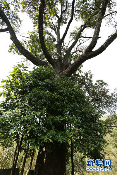 ????“我們從小不知道這是什么樹(shù),只知道是古樹(shù)?!敝谢锎?2歲的譚文安說(shuō),古樹(shù)很有靈氣,周圍村民得病后,前來(lái)燒香磕頭就可治病,曾經(jīng)有人路過(guò)碰斷一些樹(shù)枝,回去后大病一場(chǎng)?!皬拇艘院螅僖矝](méi)人敢毀壞古樹(shù)了,此樹(shù)因而保存完好?!?/p>