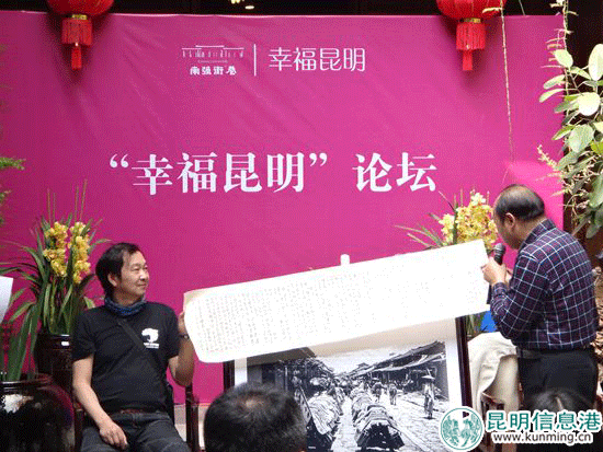 ????“我的幸福日,不能沒有幸福的故事?!蹦蠌?qiáng)街巷“幸福昆明”大型主題系列活動精彩紛呈,城市MINT音樂節(jié),情侶慈善晚宴,慈善音樂會,上海大世界基尼斯申報(bào),昆明非物質(zhì)文化遺產(chǎn)展示,昆明記憶殷曉俊記憶攝影展,“幸福昆明”論壇等活動盛裝登場,其中最受矚目的是“幸福昆明”論壇,由不同年齡階段代表昆明的典型人物,聚集一堂,暢所欲言,回首和展望昆明數(shù)十年的發(fā)展歷程以及城市的變遷,講述自己親歷的幸福故事,闡述自己對幸福的不同感受和理解。著名花鳥畫家李世民先生說:“昆明四季如春的氣候,昆明的鳥語花香,昆明這片土地本身就是幸福?!敝骷?、網(wǎng)絡(luò)媒體人風(fēng)之末端說:“昆明人知足常樂,容易滿足,有自己的幸福觀。”