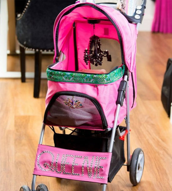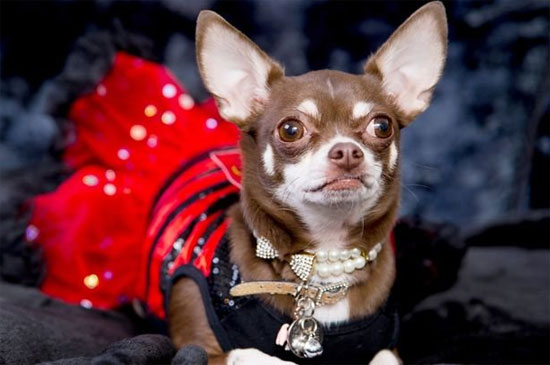 ????兩年前,狗主人約瑟芬卡特買了這只只有手提包大小的吉娃娃,取名奎尼。打扮愛犬是她最大的愛好。養(yǎng)尊處優(yōu)的小狗不僅有自己的裙子、外套、帽子、假發(fā)及首飾,還有私人手推車。約瑟芬在愛犬裝扮上的花銷甚至超過自己的,但是她認(rèn)為這么做是值得的。
