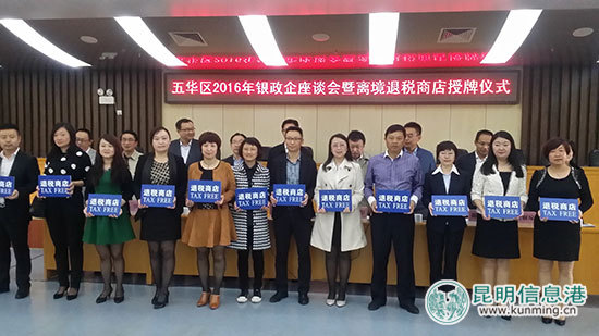 云南省首批離境退稅商店的五華區(qū)16家企業(yè)門店領(lǐng)取授牌。