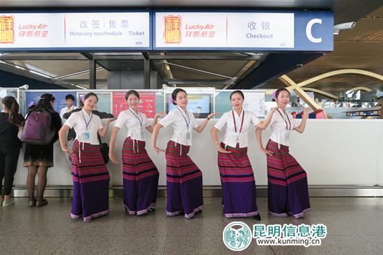 祥鵬航空柜臺(tái)工作人員身著傣族服裝