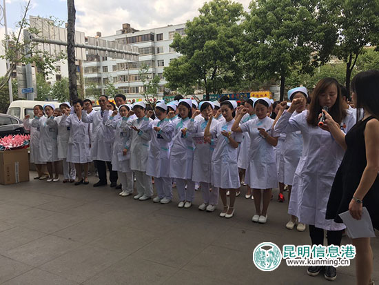 ????為了使更多的失明人士能早日重見光明,昆明愛爾眼科全體醫(yī)護人員集體宣誓:傳光明遞希望,發(fā)揚人道主義精神,移風(fēng)易俗,奉獻愛心,關(guān)愛生命,加入到捐贈眼角膜的高尚者的行列。下午兩點,愛爾眼科醫(yī)院門口人頭攢動,幾十名身著白大褂的愛爾眼科的醫(yī)護人員,整齊地站成幾排,旁邊放著上百只親手折的“心形”千紙鶴,他們宣誓的舉動引來無數(shù)市民駐足。