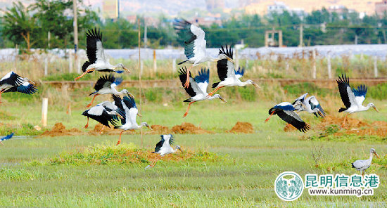 ????記者昨日從云南野鳥會(huì)獲悉,該會(huì)會(huì)員在晉寧縣發(fā)現(xiàn)20只鉗嘴鸛在濕地覓食。據(jù)悉,這是繼2013年首次在晉寧東大河發(fā)現(xiàn)12只鉗嘴鸛后再次發(fā)現(xiàn)這種鳥類。