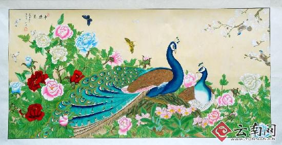 ????《孔雀》已不僅僅只是畫家們的專注,來自麗江華坪縣的肢殘人士李虹毅的繪畫作品《孔雀》也達到了一定的寫意。這位時下以國畫為主的李虹毅,開始學畫始于2012年,當時她無意中在電視里看到了京劇《穆桂英掛帥》,被其中一句‘誰說女子不如男”的臺詞深深震撼,讓她一時間對喜歡的故事做一個創(chuàng)作有了亢奮的靈感和沖勁。 在創(chuàng)作了這幅《誰說女子不如男》后,一直懸掛在自己房間最顯眼的位置,當自己感到沮喪時會看一看、想一想,用穆桂英的精神鼓勵自己勇往直前,給自己不停的充電加油,讓自己沒有理由退縮和迷茫。