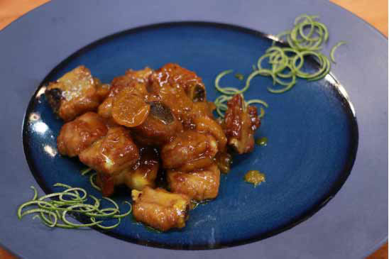 ????材料:排骨 姜 蔥 雕梅 青檸檬 黃飯花水 冰糖 吉士粉 鹽