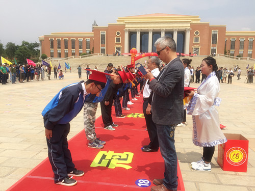 云南衡水實(shí)驗(yàn)中學(xué)首屆成人禮活動(dòng)在昆舉辦 同學(xué)向師長(zhǎng)恭行“拜謝禮”。