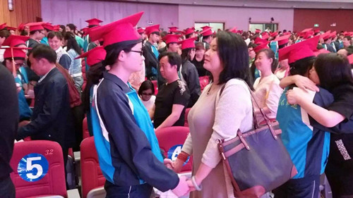 ????學(xué)校為學(xué)生們準(zhǔn)備了《中華人民共和國(guó)憲法》和“成人紀(jì)念章”作為成人禮物,一個(gè)直徑1.8米、高1.8米,插有18根蠟燭的巨型蛋糕的出現(xiàn)將活動(dòng)推向高潮,伴著生日歌,同學(xué)紛紛默默許愿。隨后,家長(zhǎng)和學(xué)生現(xiàn)場(chǎng)交換密封書信,一句句“爸爸,您辛苦了”、“媽媽我愛你”的深情表達(dá),讓父母?jìng)冧粶I下。