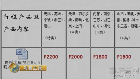 ????日前,在昆明火車站附近一旅行社,《消費(fèi)主張》記者報(bào)名參加了標(biāo)價(jià)為600元的大理麗江火車雙臥四晚五天精品游。行程單顯示,四晚五天的旅游過(guò)程中僅有兩個(gè)購(gòu)物點(diǎn)。真實(shí)情況呢?