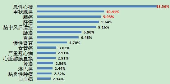 ????圖1:15種出險(xiǎn)率最高的重大疾病(男性 )