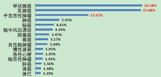 ????圖4:15種出險(xiǎn)率最高的重大疾病(女性 )