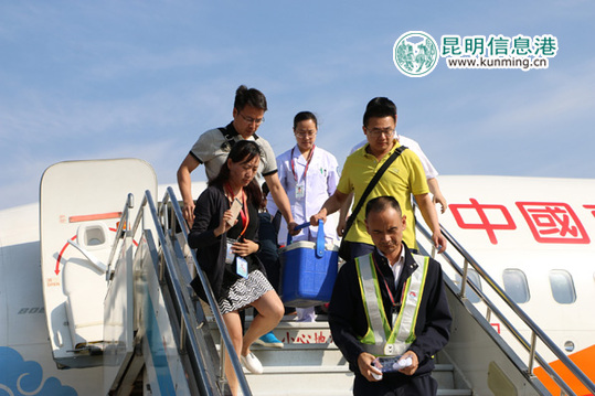 ????昆明信息港訊 記者上官艷君 5月12日,昆明機(jī)場(chǎng)、空管、東方航空等民航各單位通力配合,開(kāi)通器官轉(zhuǎn)運(yùn)綠色通道,順利保障首例人體捐獻(xiàn)器官?gòu)奈麟p版納快速轉(zhuǎn)運(yùn)至昆明,為搶救患者爭(zhēng)取了寶貴的時(shí)間。這是國(guó)家衛(wèi)生計(jì)生委、中國(guó)民用航空局等六部門(mén)聯(lián)合下發(fā)《關(guān)于建立人體捐獻(xiàn)器官轉(zhuǎn)運(yùn)綠色通道的通知》后,云南民航綠色通道保障的首例人體捐獻(xiàn)器官運(yùn)輸。