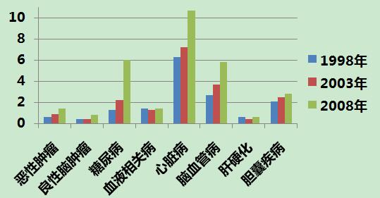 ????圖1:中國居民部分重大疾病兩周患病率(‰)統(tǒng)計(jì)