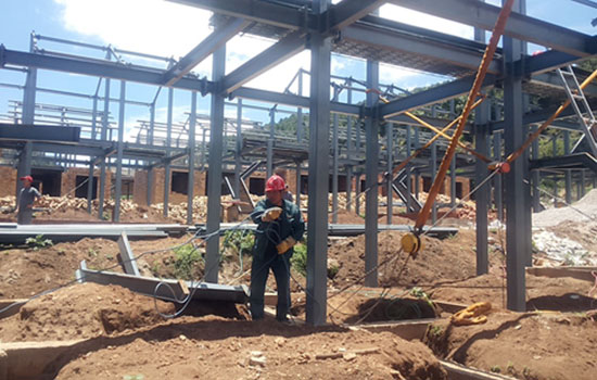 在馬鹿塘鄉(xiāng),工人正在加緊建房