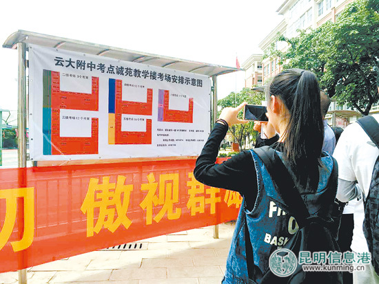 考生到云大附中考點(diǎn)看考場。記者周密/攝