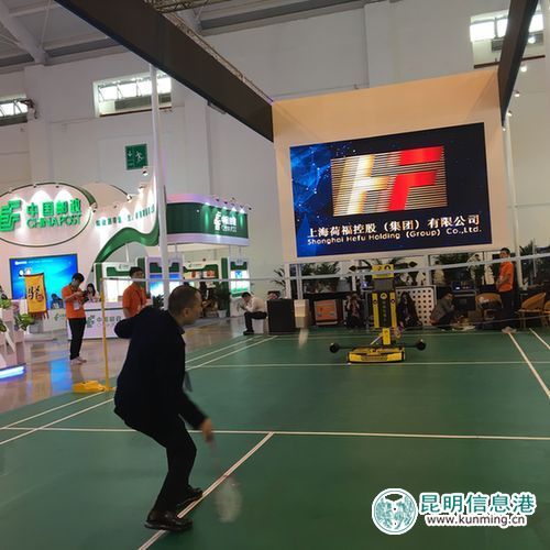 ????3號(hào)館·信息化及信息產(chǎn)業(yè)館里正在打羽毛球的機(jī)器人童鞋,嫻熟的球技,靈活的小身段,這技術(shù),爐火純青啊。聽說人家還和李克強(qiáng)總理“切磋“過球技,最終戰(zhàn)成1:1平。你想試試嗎?