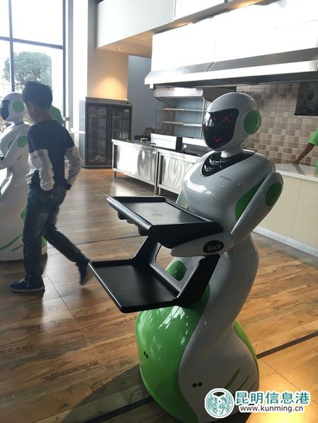 ????在滇池國(guó)際會(huì)展中心13號(hào)館一層機(jī)器人體驗(yàn)中心,智人餐廳里的機(jī)器人個(gè)個(gè)身懷絕技,美女機(jī)器人為你端茶送水,心動(dòng)了嗎?