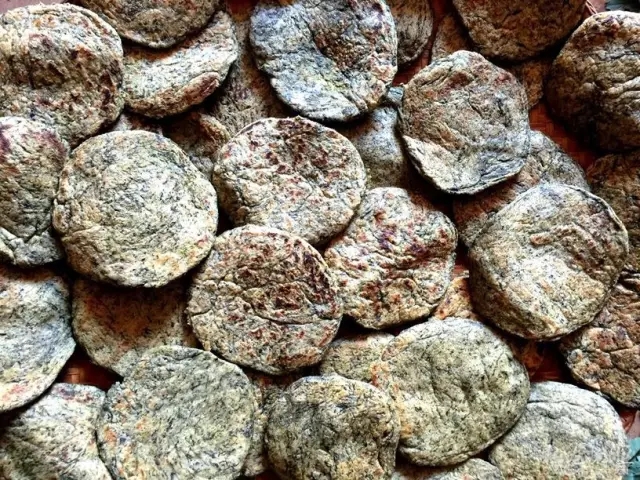 ????滇西老家管叫面蒿粑粑為楚米粑粑,主要自然原料面蒿還是相同的,只不過叫法和制作工序不同而已,風(fēng)味有別。地域差異,飲食文化、習(xí)俗有所差別,面蒿粑粑的風(fēng)味自然不同了。