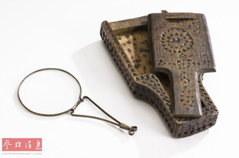 ????在眼鏡變得容易佩戴之前,手持放大工具更為普及。圖為1700年前后德國人使用的放大鏡和裝放大鏡的木盒子。(美國全國公共廣播電臺網站)