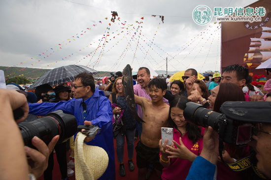 ????昆明信息港訊 記者楊炎 通訊員姚生 火把節(jié)剛過,7月30日,昆明市晉寧縣昆陽街道舊寨村又迎來了一年一度的漁人文化節(jié)。2016年“漁人文化節(jié)”節(jié)目豐富多彩,除往年的開幕式文藝表演、萬人狂歡之泥塘捉魚比賽、萬人狂歡篝火晚會(huì)外,今年“漁人節(jié)”新增了漁人文化節(jié)萬人狂歡之七彩泡泡跑、漁人文化節(jié)萬人狂歡之全民尋寶等活,讓參加活動(dòng)的不同人群都有了狂歡的機(jī)會(huì)?;顒?dòng)還設(shè)置了豐富的獎(jiǎng)品,讓參加活動(dòng)的群眾玩得更加盡興。