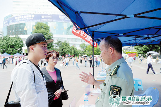 在南屏步行街活動(dòng)現(xiàn)場(chǎng),云南省征兵辦設(shè)置的咨詢點(diǎn)有政審考核咨詢、文化條件咨詢、優(yōu)先政策咨詢、體檢條件咨詢等,并提供相應(yīng)的參軍入伍宣傳資料,方便市民和有志參軍的青年現(xiàn)場(chǎng)咨詢。在這些咨詢點(diǎn)中,最受歡迎的是體檢條件咨詢點(diǎn)處。其中問(wèn)得最多的是身高體重標(biāo)準(zhǔn)等問(wèn)題,對(duì)身高體重標(biāo)準(zhǔn)、視力要求等的身體外部特征,征兵辦的工作人員參照有關(guān)標(biāo)準(zhǔn)進(jìn)行現(xiàn)場(chǎng)答復(fù)。而對(duì)于某些身體內(nèi)部表現(xiàn),如先天性疾病或突發(fā)性疾病等,征兵辦的工作人員表示,會(huì)在網(wǎng)上報(bào)名成功后進(jìn)行嚴(yán)格的體檢考評(píng),體檢合格者方可進(jìn)入下一步審查。