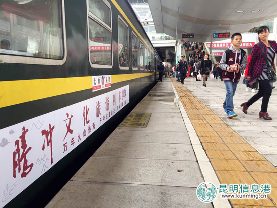 昆明信息港訊 記者上官艷君 9月10日,“騰沖號”文化旅游列車(昆明—太原K505/6次)首發(fā)儀式暨太原尋根之旅啟動儀式在昆明火車站舉行,標志著云南省騰沖市與昆明鐵路局共同打造的“騰沖號”文化旅游列車正式開行。