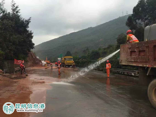 ????為了確保盡快恢復(fù)交通暢通,云南公投昆明西管理處、建設(shè)集團養(yǎng)護公司啟動二級應(yīng)急預(yù)案,成立應(yīng)急搶險工作組。云南省公投公司緊急調(diào)動搶險人員330余人,挖機11臺、裝載機3臺、吊車1臺、小貨車5輛、自卸車19輛、拖車5輛,載全力開展搶險工作并及時組織清理落石。