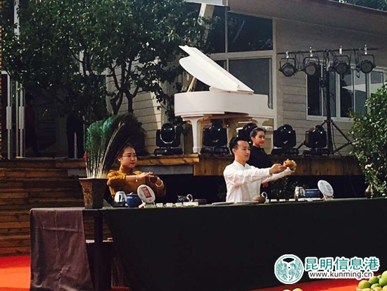 ??? 悠揚(yáng)的古樂伴隨清幽的茶香,茶藝師們?yōu)橛^眾奉上一場賞心悅目的茶藝表演。記者 尹吉/攝