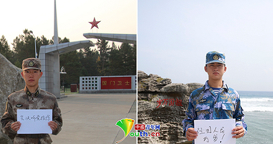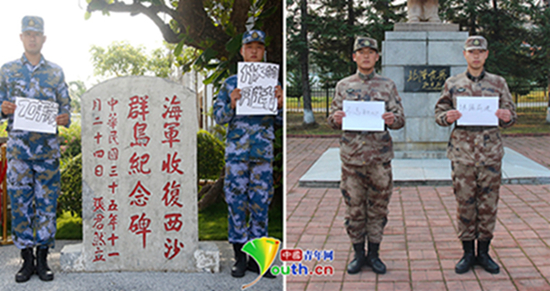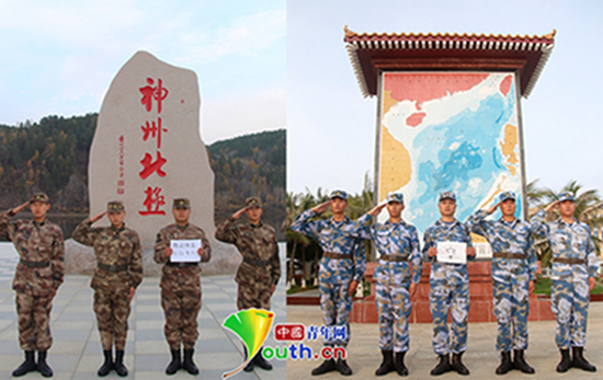 “強(qiáng)國強(qiáng)軍 長征有我”,“請祖國和人民放心”?。〝z影:盧冠瓊/鄒德勇)