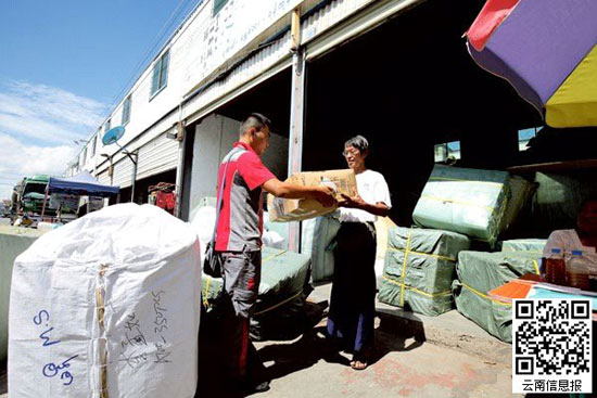 ????也就是基于這樣特殊的政策和地理位置,很多人因商而聚集到姐告,其中也包含大量緬甸人。作為正在改變國(guó)內(nèi)外人們生活的電商,瑞麗的這項(xiàng)數(shù)據(jù)位居云南前列,這樣的購(gòu)物模式正給在姐告經(jīng)商的緬甸人帶來便捷,其中每天便有百余票購(gòu)物源自京東。而把貨物送到這些緬甸人手中,也就成了郭玉紅的日常工作。