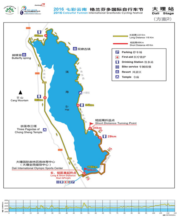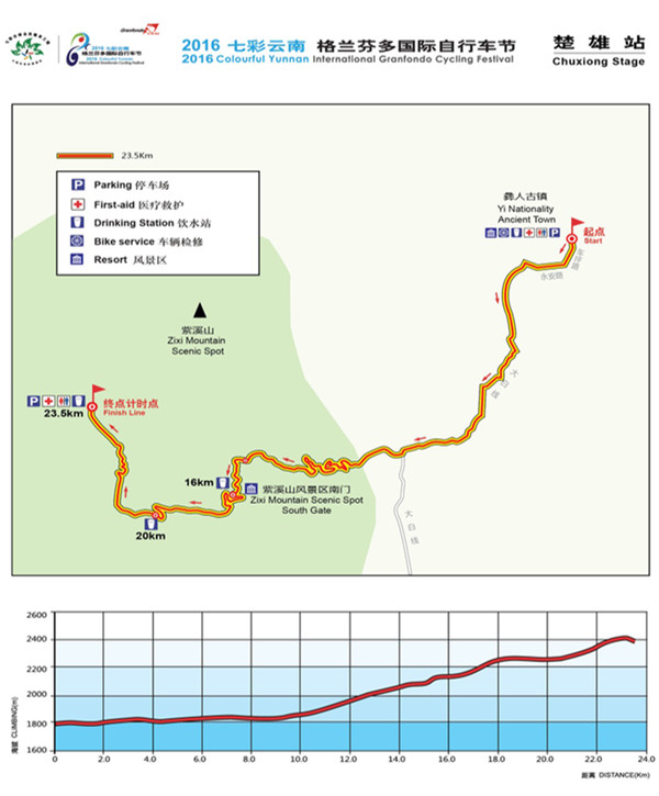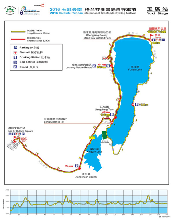 ????據(jù)悉,比賽開(kāi)幕儀式將于11月6日上午在昆明市呈貢新區(qū)市級(jí)行政中心舉行。此次自行車(chē)節(jié)賽程最長(zhǎng)174公里,最短23.5公里。第一賽段賽程將在昆明滇池湖畔舉行,全程110公里;第二賽段賽程在玉溪市進(jìn)行,選手將途經(jīng)聶耳文化廣場(chǎng)、江川星云湖、野牛山,最后到達(dá)澄江撫仙湖月亮灣公園,全程174公里;第三賽段賽程為爬坡賽,將在楚雄州進(jìn)行,由楚雄市彝人古鎮(zhèn)出發(fā)至紫溪山,全程23.5公里;第四賽段在大理州進(jìn)行,由大理市全民健身中心出發(fā),經(jīng)小普陀、雙廊古鎮(zhèn)等地,返回大理市全民健身中心,全長(zhǎng)118公里;第五賽段賽程在麗江市進(jìn)行,從麗江古城出發(fā)經(jīng)麗江機(jī)場(chǎng)高速、束河路、玉峰寺等地,最終抵達(dá)玉龍雪山景區(qū),全長(zhǎng)101公里。