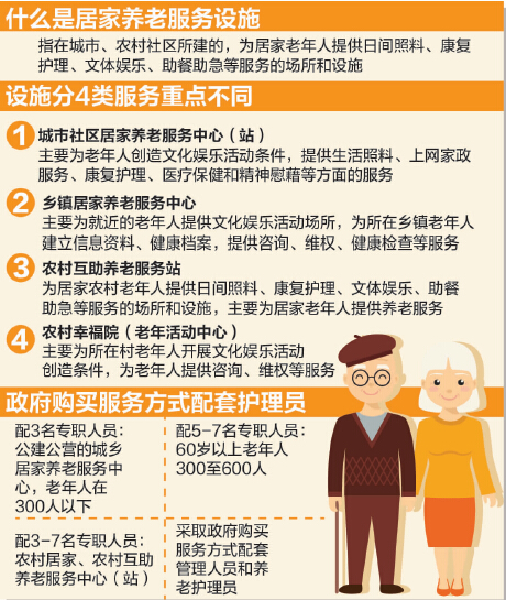 ????公建公營的城鄉(xiāng)居家養(yǎng)老服務(wù)中心(站),可設(shè)置政府公益性崗位,農(nóng)村不少于3-5名、城市不少于3-7名專職工作人員。