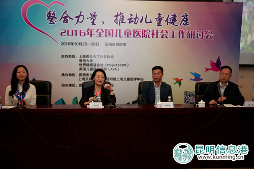 ????昆明信息港訊 記者納婭 10月27日,由世界健康基金會(huì)(Project HOPE)、全球暴力和虐待預(yù)防學(xué)會(huì)(Academic of Violence and Abuse)、香港大學(xué)、上海市社會(huì)工作者協(xié)會(huì)主辦,上海交通大學(xué)醫(yī)學(xué)院附屬上海兒童醫(yī)學(xué)中心和昆明市兒童醫(yī)院共同承辦,國(guó)藥控股有限公司協(xié)辦的“整合力量,推動(dòng)兒童健康——2016全國(guó)兒童醫(yī)院社會(huì)工作研討會(huì)在滇池大酒店舉辦,會(huì)議為期兩天。