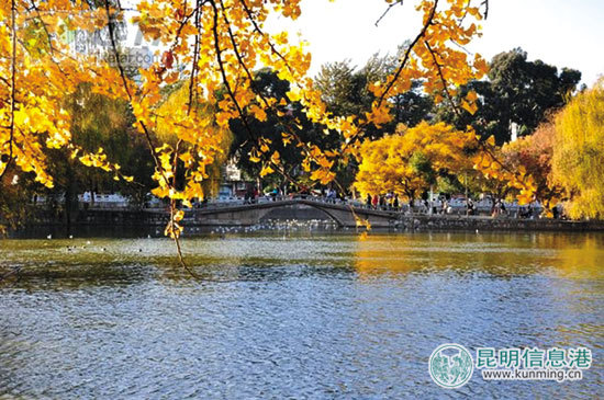 ????位于昆明市中心的翠湖公園是一座免費公園,園內銀杏高大挺拔,樹齡長。在這里,你可以放慢腳步,享受都市中難得的愜意,與那一抹金黃來一場約會,看看冬日里最暖的色彩。
