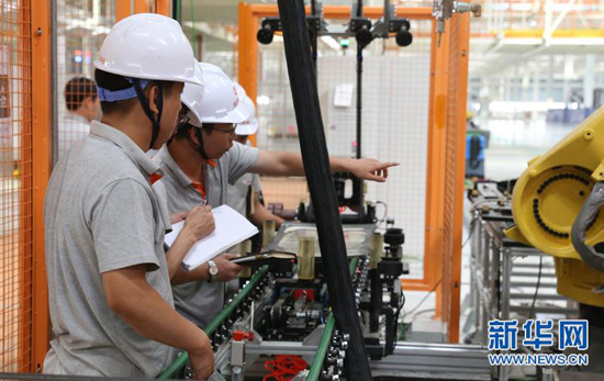 工人在進(jìn)行生產(chǎn)線設(shè)備調(diào)試 新華網(wǎng) 羅春明/攝