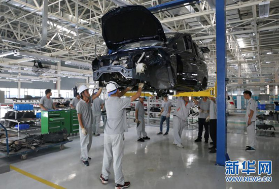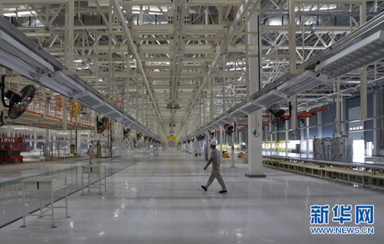 北汽瑞麗6萬余平方米的總裝車間 新華網(wǎng) 羅春明/攝