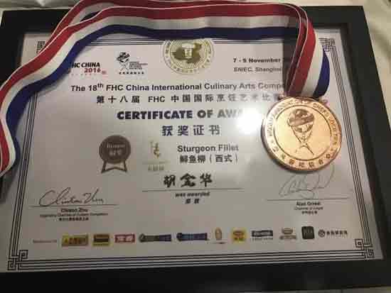 本次大賽共設(shè)金、銀、銅三個獎項,獎牌比例占25%,由于參賽選手有近1000多人,所以能在大賽獲獎也證明了所有參賽選手的實力。昆明飯店有限公司餐飲分公司西廚張基瑋、胡金華、鄢赪技能大師工作室人員阮星海在本次比賽中獲得了三塊獎牌。分別是牛肉類菜肴的銀牌、銅牌,魚類菜肴的銅牌。
