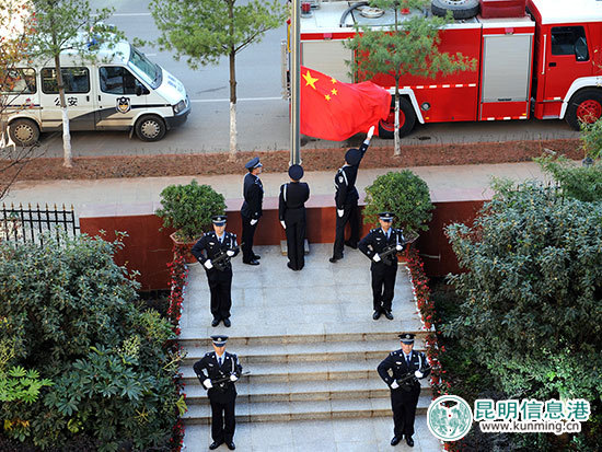 ????昆明信息港訊 記者合宇聰 1月1日上午,嵩明縣公安局舉行“慶元旦”升國旗儀式,迎接2017年的到來。全局各部門領(lǐng)導(dǎo)、民警職工代表,消防大隊(duì)武警官兵共計(jì)140余人參加儀式。