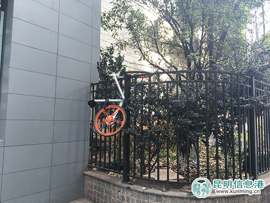 除亂停亂放外,部分共享單車(chē)還被掛在了墻壁上、樹(shù)枝上和鐵圍欄上,有些竟然還被丟進(jìn)垃圾桶里。工作人員稱(chēng),這樣的不文明現(xiàn)象時(shí)常發(fā)現(xiàn),而且大多發(fā)生在晚上,很難找到“肇事者”,他們只得將車(chē)一輛輛取下并抬出步行街。