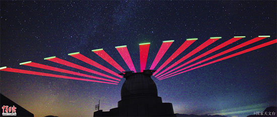 興隆觀測站跟蹤“墨子號”量子衛(wèi)星的實景拍攝。中國科學院供圖。