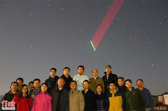 部分在軌測試科研人員與過境的“墨子號”合影。中國科學院供圖。