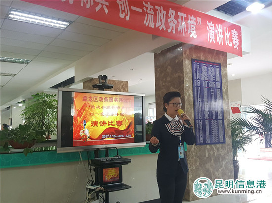 ????昆明信息港訊 記者李紅鸞 盤龍區(qū)政務(wù)中心舉辦的“做政務(wù)服務(wù)標(biāo)兵,創(chuàng)一流服務(wù)環(huán)境”演講比賽,1月19日進行了決賽,4號選手余麗娜以《熱情服務(wù)成就夢想》的演講獲得一等獎。