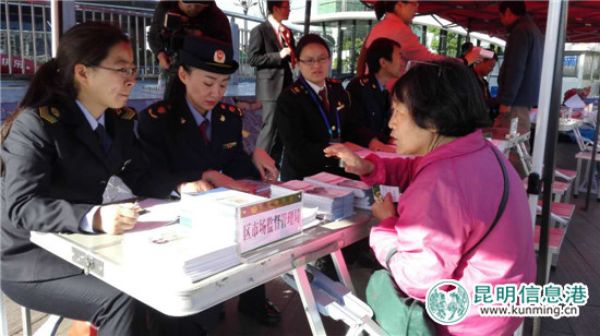 ????昆明信息港訊 記者郭成明 3月15日,盤龍區(qū)市場(chǎng)監(jiān)督管理局、區(qū)消費(fèi)者協(xié)會(huì)組織開(kāi)展“3.15國(guó)際消費(fèi)者權(quán)益日”系列宣傳咨詢服務(wù)活動(dòng)。在活動(dòng)主會(huì)場(chǎng)中匯商業(yè)中心廣場(chǎng),盤龍區(qū)工商局、盤龍區(qū)文體旅游局等多個(gè)部門共發(fā)放消費(fèi)維權(quán)服務(wù)指南1000份、藥品安全宣傳手冊(cè)500份,3.15??⒄J(rèn)清傳銷、價(jià)格法規(guī)、電梯安全常識(shí)、農(nóng)資假藥及2017年主題宣傳材料近5000份,接受消費(fèi)者咨詢近625人次,受理消費(fèi)者投訴2件。