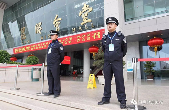 ??? 昆明信息港訊 記者合宇聰 3月18日、19日上午,伴隨著莊嚴雄壯的國歌聲,中國人民政治協(xié)商會議昆明市第十三屆委員會第一次會議、昆明市第十四屆人民代表大會第一次會議,分別在昆明會堂、昆明國際會展中心開幕。昆明市公安機關(guān)高度重視2017年市兩會安保工作,成立了安保工作領(lǐng)導小組,嚴密安保工作方案,狠抓各項安全措施的落實,全體執(zhí)勤民警認真履職、文明執(zhí)勤、熱情服務(wù),全力開展警保衛(wèi)工作,保障了市兩會安全順利開幕。