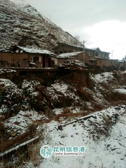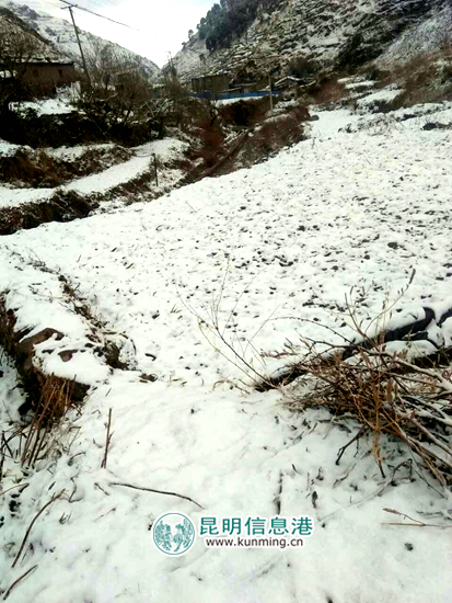 ????昆明信息港訊 通訊員楊江 宋杭坻?雪消門外千山綠,漫山桃花沐春雪。剛與陽春三月第一場大雪戀戀不舍告別,3月19日早晨,倘甸兩區(qū)舍塊鄉(xiāng)云坪村又迎來了陽春三月的第二場雪,鵝毛般的雪花紛紛揚揚灑落一地,農(nóng)房、草山、山峰銀裝素裹、粉妝玉砌,讓人如癡如醉。一夜春風(fēng),千山萬山雪花飄,白茫茫一片草山。這就是美麗的舍塊,讓人有意想不到的美!