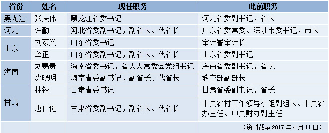 ????表:五省黨政主要領(lǐng)導(dǎo)職務(wù)調(diào)整一覽